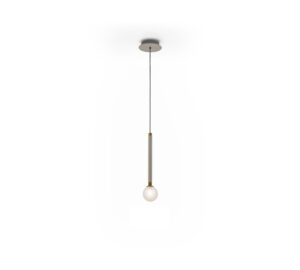 Lampada a sospensione con stelo di metallo verniciato e sfera in vetro soffiato