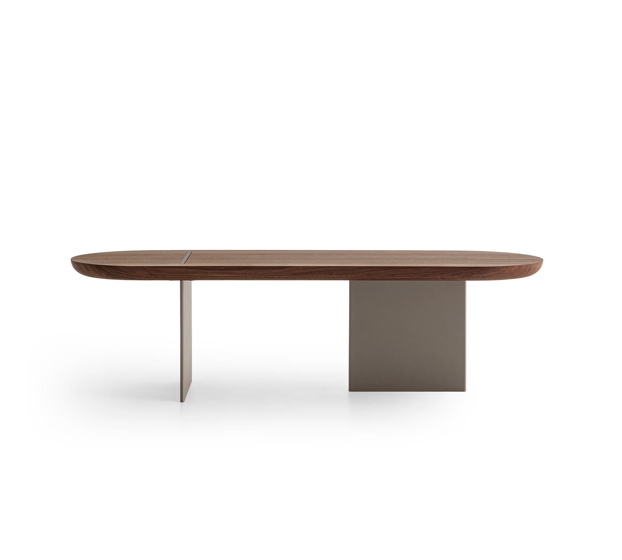 The special feature of the metal base is its corner rounding, which literally melts into the wooden top. The metal is varnished using baked-on powders, with no use of solvents.