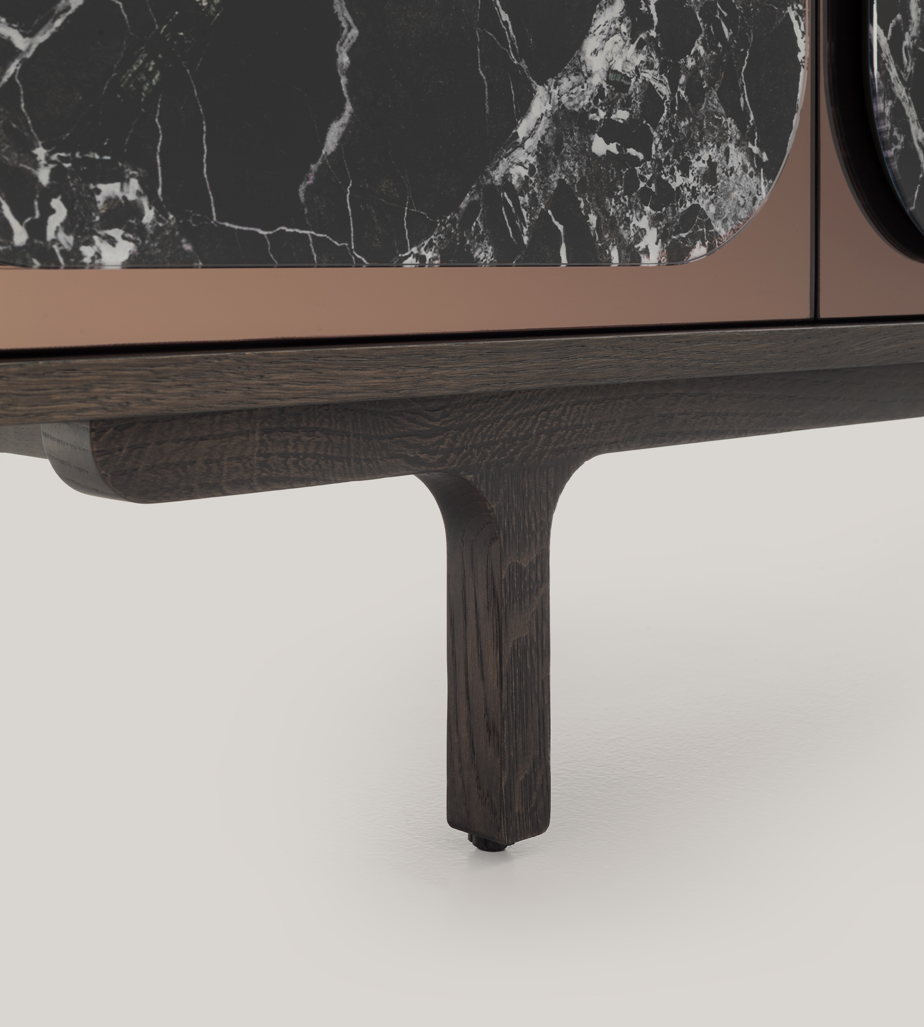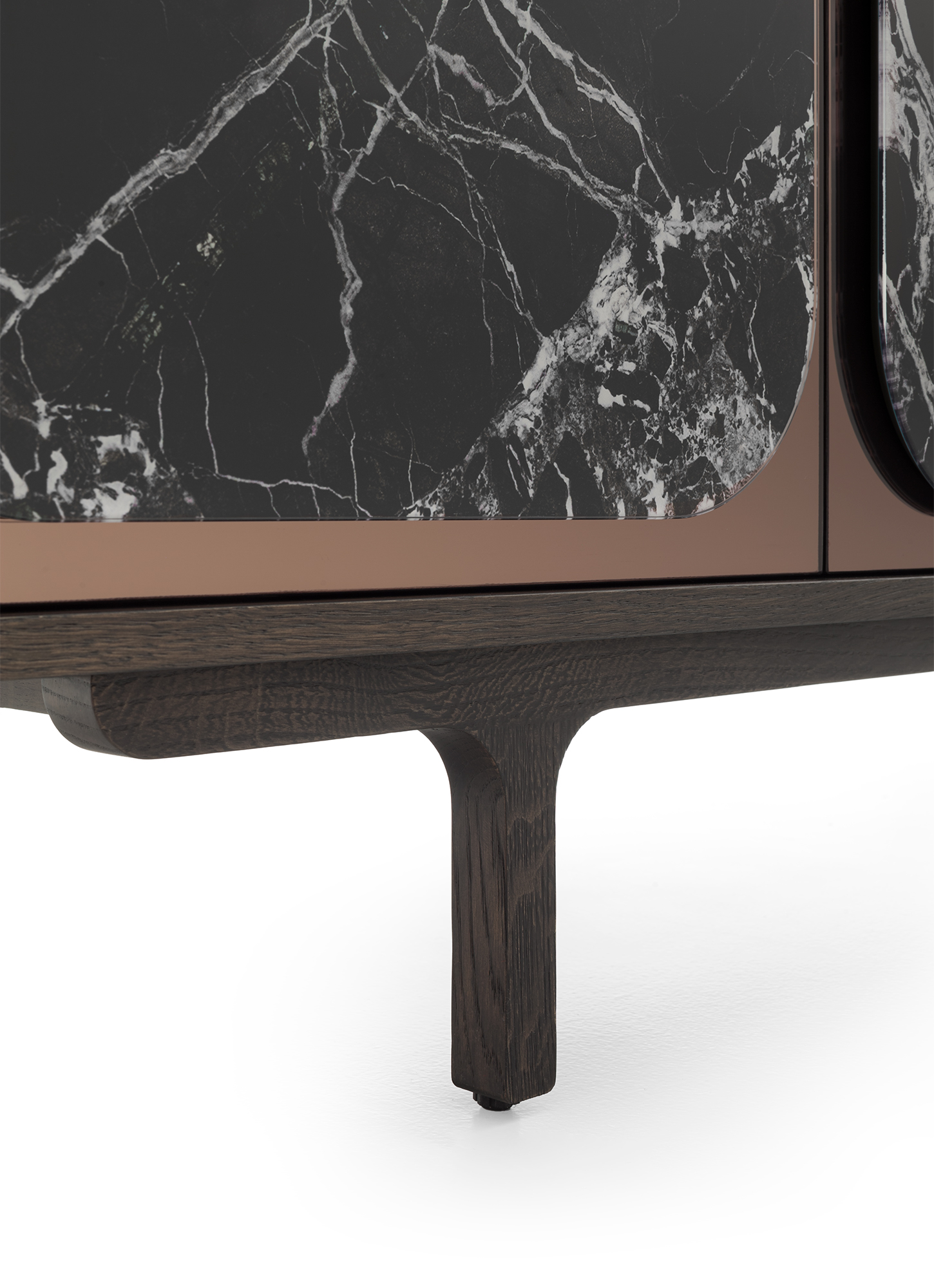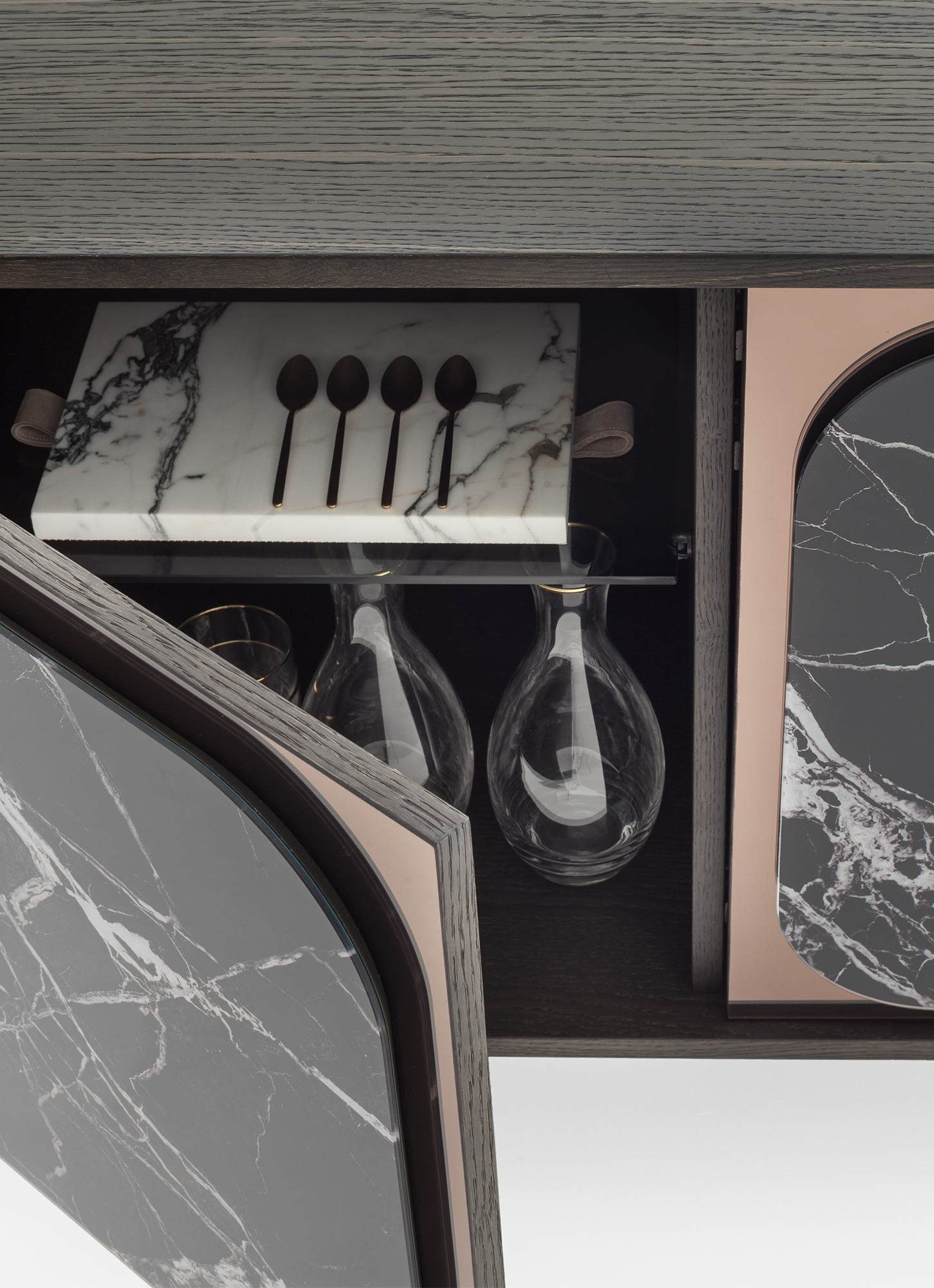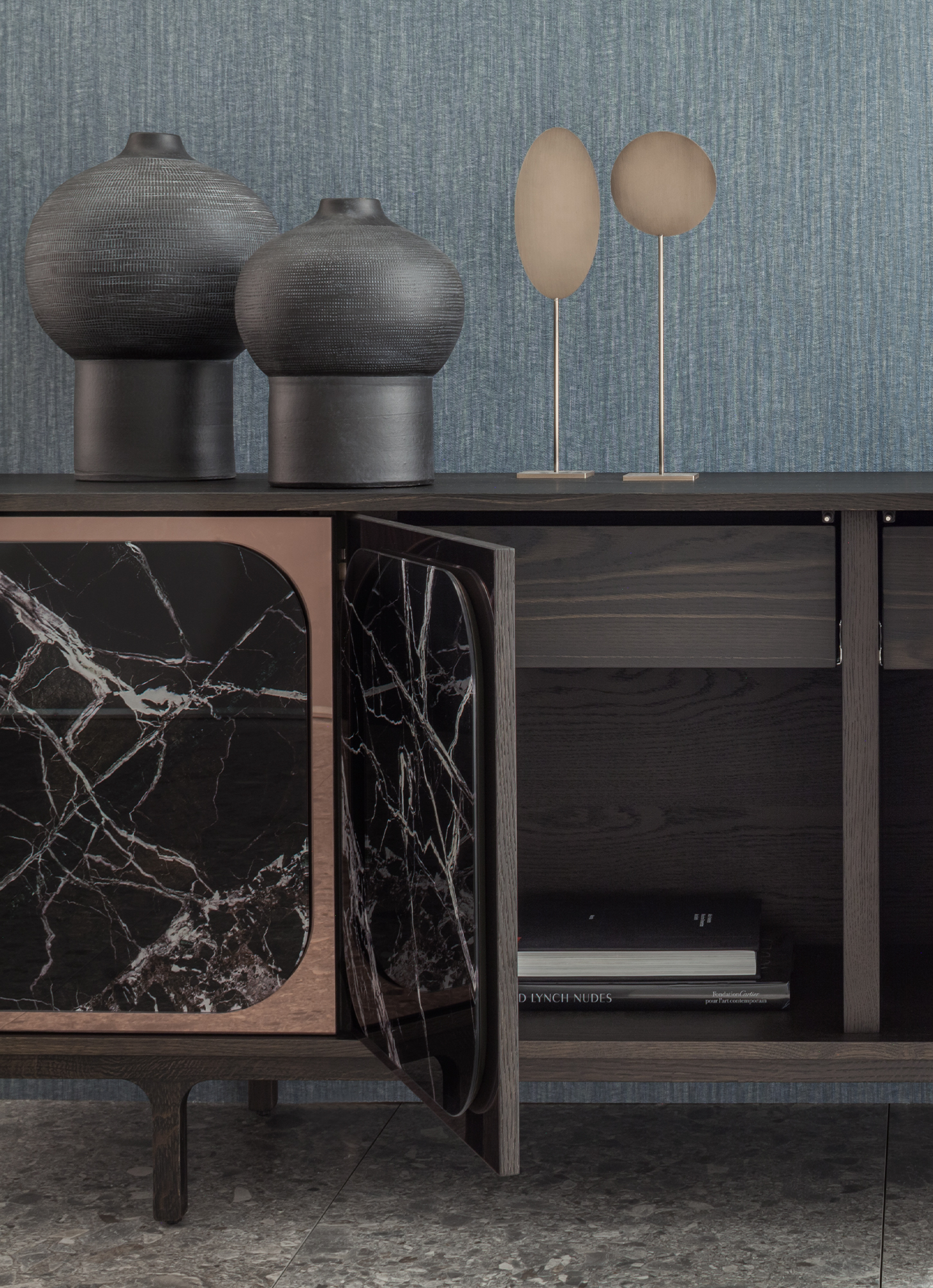 Le buffet Margarette est une réinterprétation audacieuse des matériaux dans une optique de design innovant. Un buffet en laque douce ou en bois élégant mélangé à du verre moulé effet marbre reposant sur une porte miroir pour un effet de profondeur exceptionnel. Un savant dosage de texture et de couleur qui donne du caractère à chaque pièce de la maison. Un design original et innovant, 100% Made in Italy, respectueux de l’environnement et durable dans le temps.