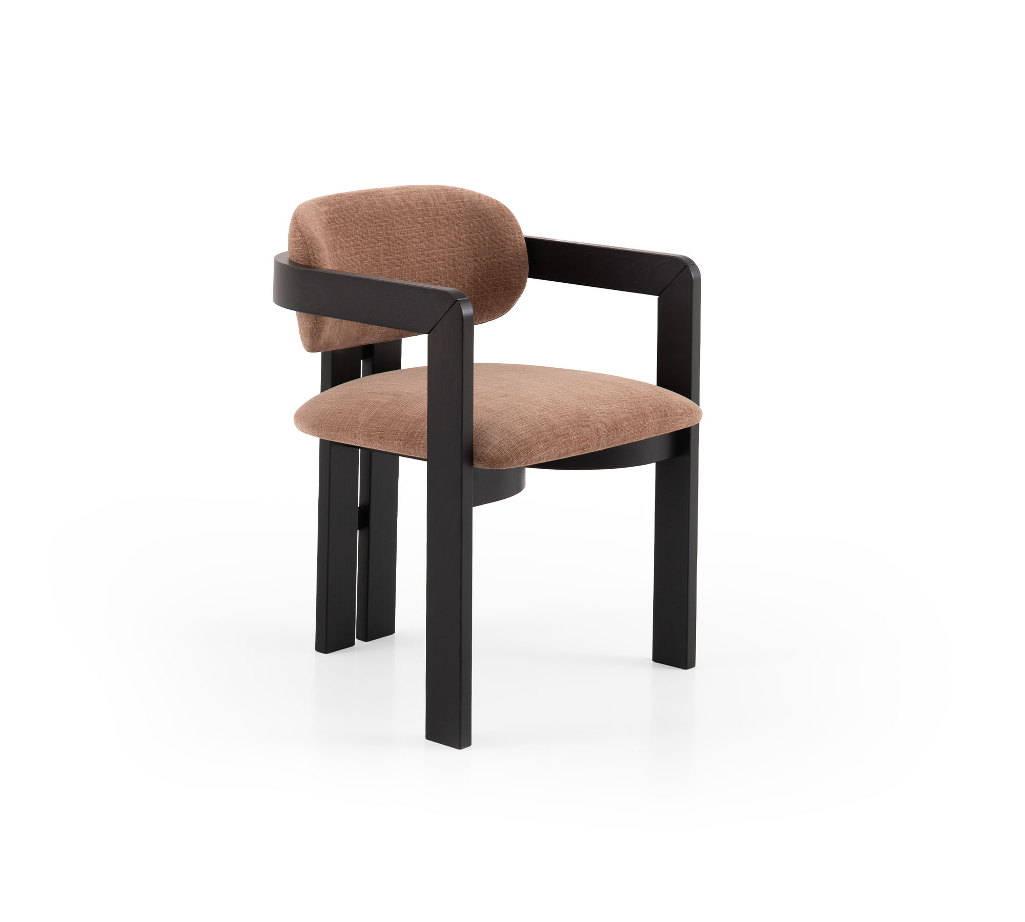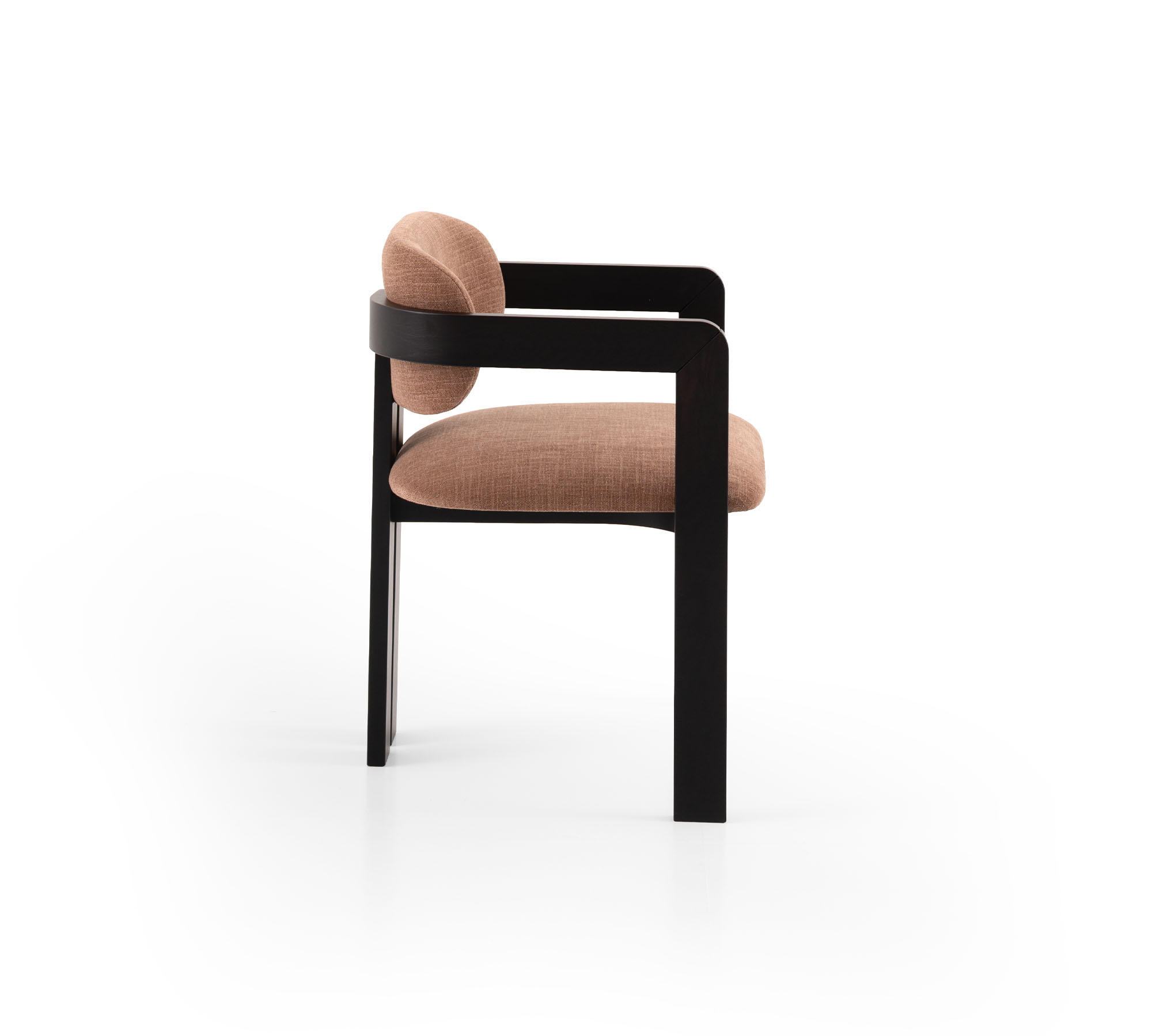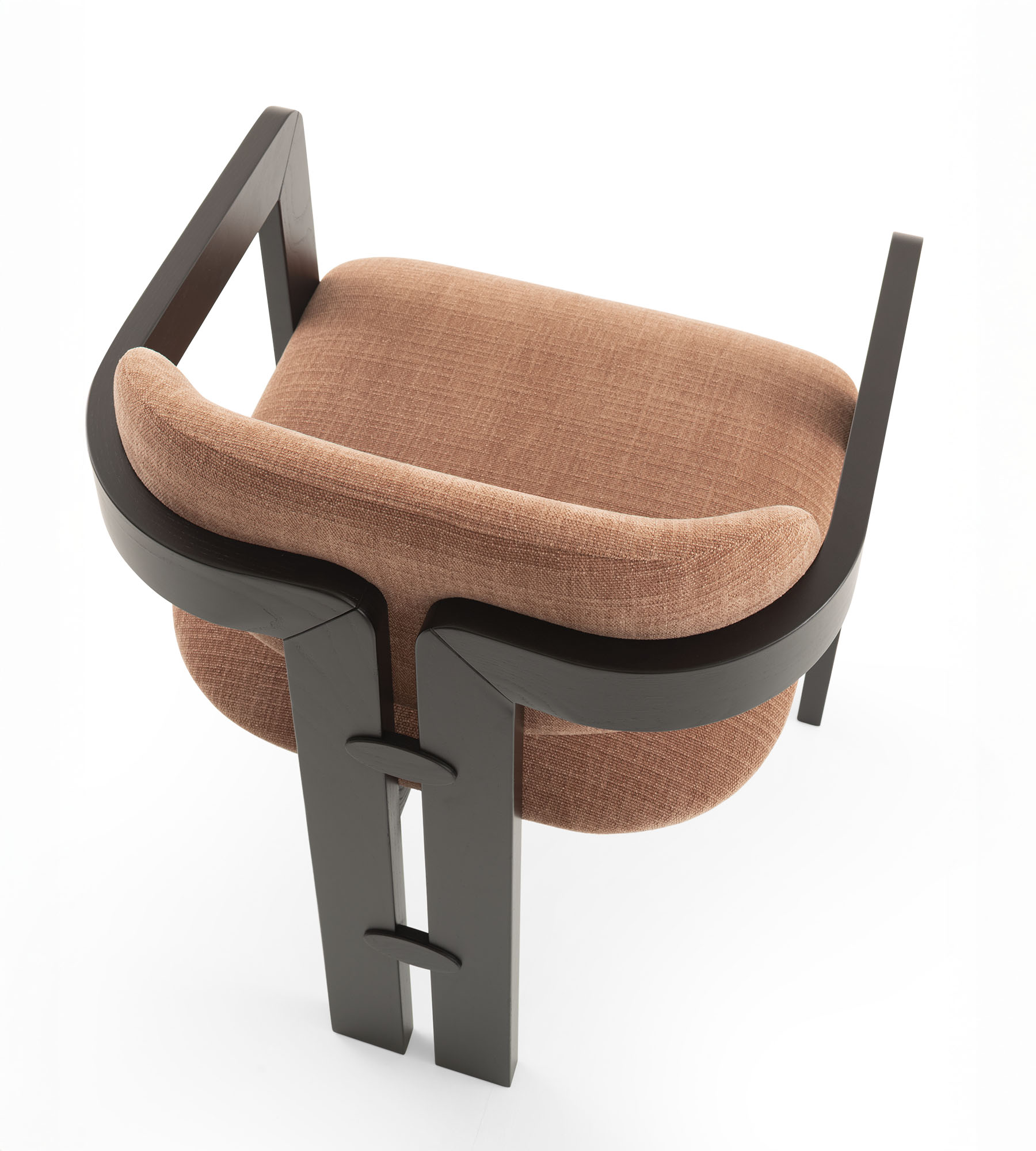 Nagi possède la grâce de ceux qui savent trouver l’équilibre entre les opposés : une structure géométrique et affirmée qui s’adoucit en courbes sinueuses et enveloppantes. Le bois massif est travaillé en courbe, suivant des lignes qui épousent l’assise avec naturel et précision. Le résultat est un fauteuil au caractère fort mais à la présence douce, à l’aise aussi bien autour d’une table que dans un salon.