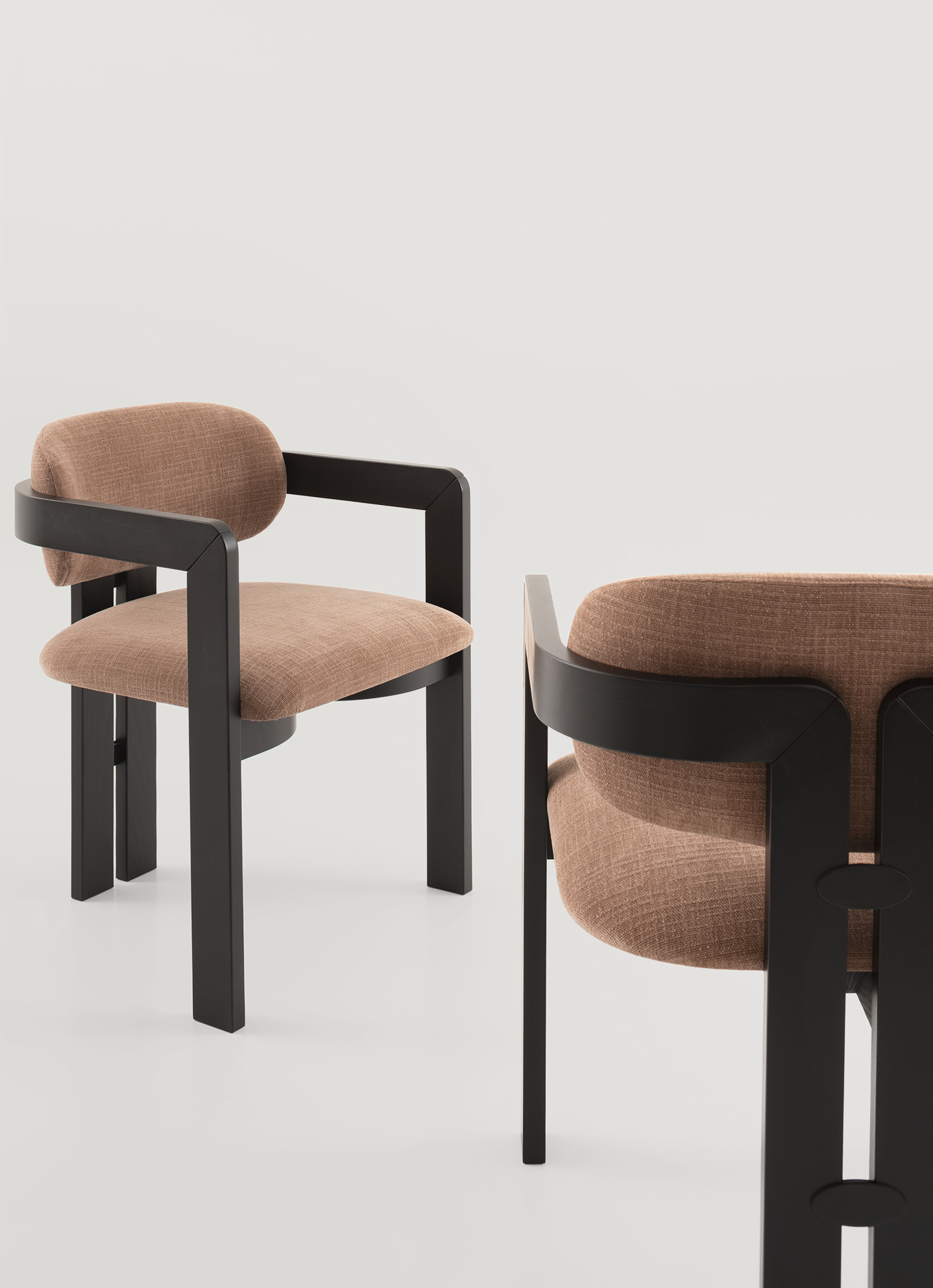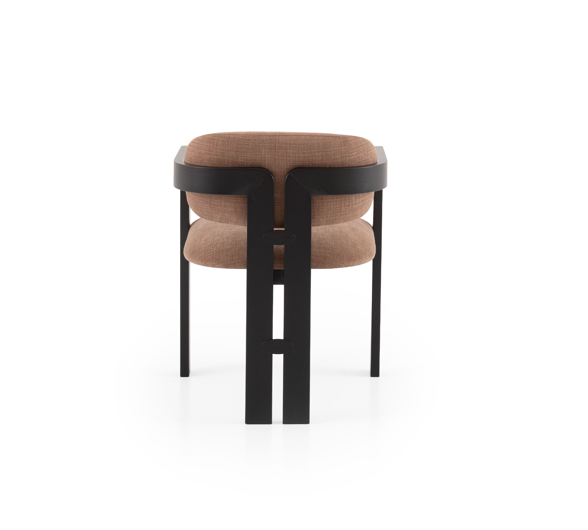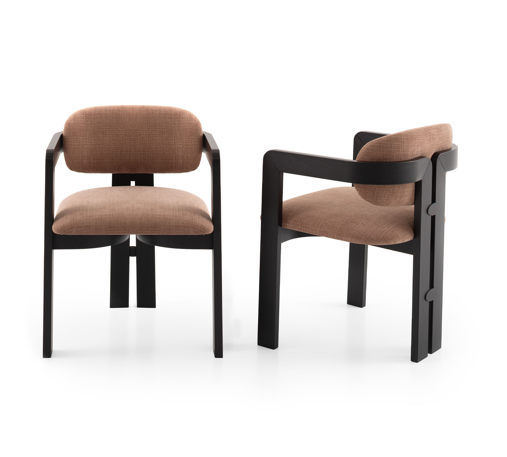 Nagi possède la grâce de ceux qui savent trouver l’équilibre entre les opposés : une structure géométrique et affirmée qui s’adoucit en courbes sinueuses et enveloppantes. Le bois massif est travaillé en courbe, suivant des lignes qui épousent l’assise avec naturel et précision. Le résultat est un fauteuil au caractère fort mais à la présence douce, à l’aise aussi bien autour d’une table que dans un salon.